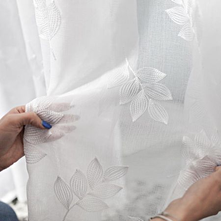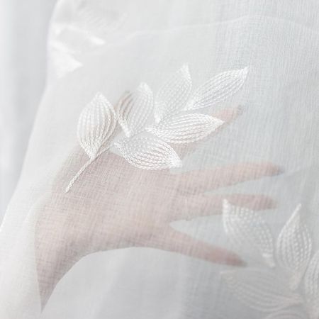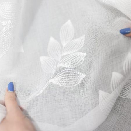 Subtelna i elegancka firanka batystowa wykonana z lekkiego, półprzezroczystego materiału w odcieniu ciepłej bieli. Delikatny wzór liści nadaje jej naturalnego uroku i sprawia, że wnętrze staje się jasne, spokojne i przytulne.